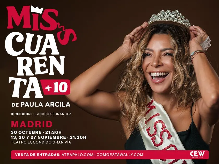 Miss Cuarenta + 10 es la versión renovada del exitoso espectáculo de Paula Arcila, en el que nos divertimos con los cambios que llegan con la edad y que ninguna mujer quiere alcanzar, pero que muchas enfrentan con valentía y humor.
